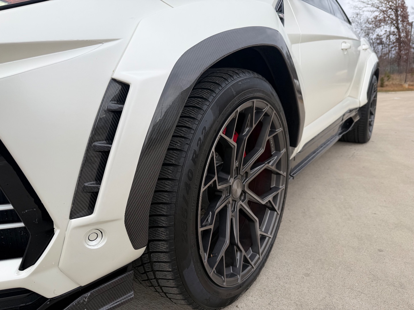 The exterior is transformed with a full widebody kit all around, paired with a carbon fiber hood designed for both visual impact and weight reduction. It sits on upgraded wheels wrapped in brand-new tires, giving it a commanding road presence. A blow-off valve adds that unmistakable turbo sound, while the stock Lamborghini exhaust keeps the factory tone refined and authentic.